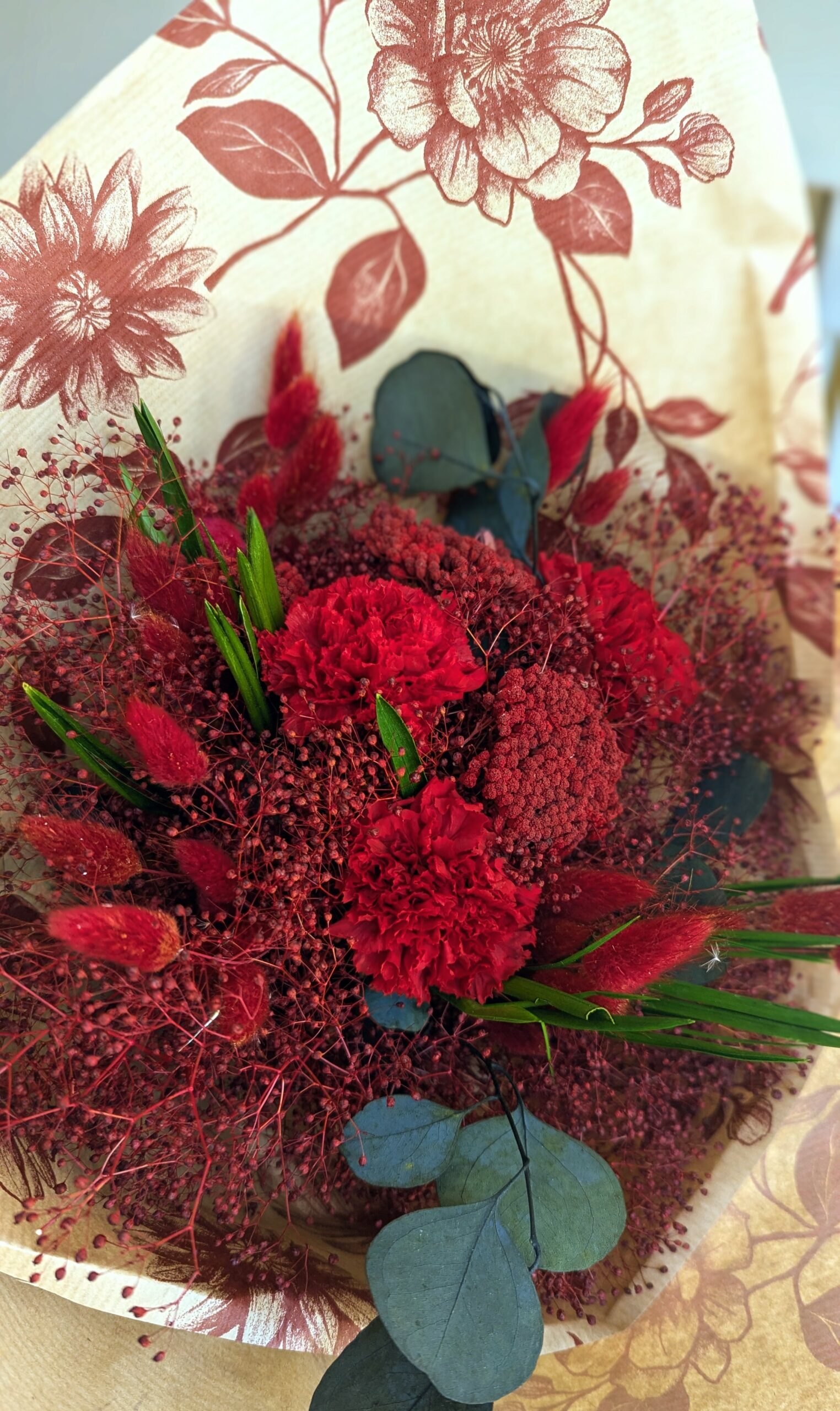 • Gypsophile rouge stabilisée (éternelle) – une fine dentelle qui dure des années et apporte légèreté.