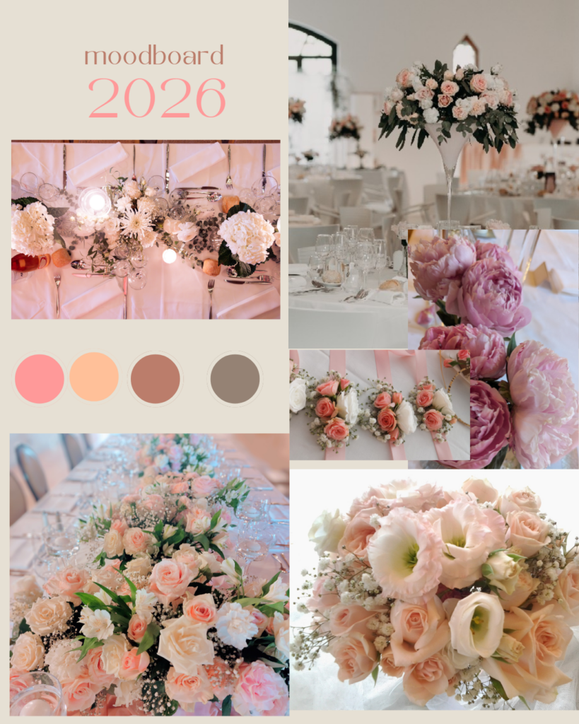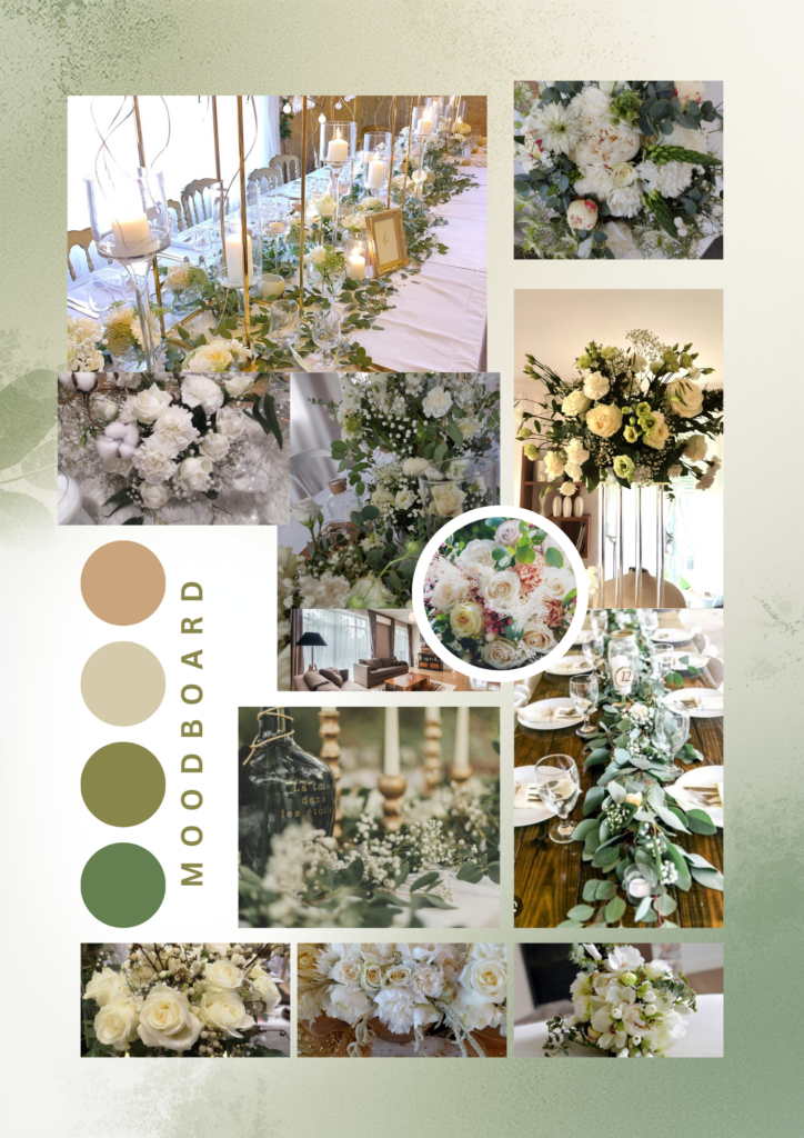 À travers des moodboards, des associations de couleurs, matières et fleurs, je vous invite à explorer différentes atmosphères : élégantes, poétiques, naturelles ou contemporaines.