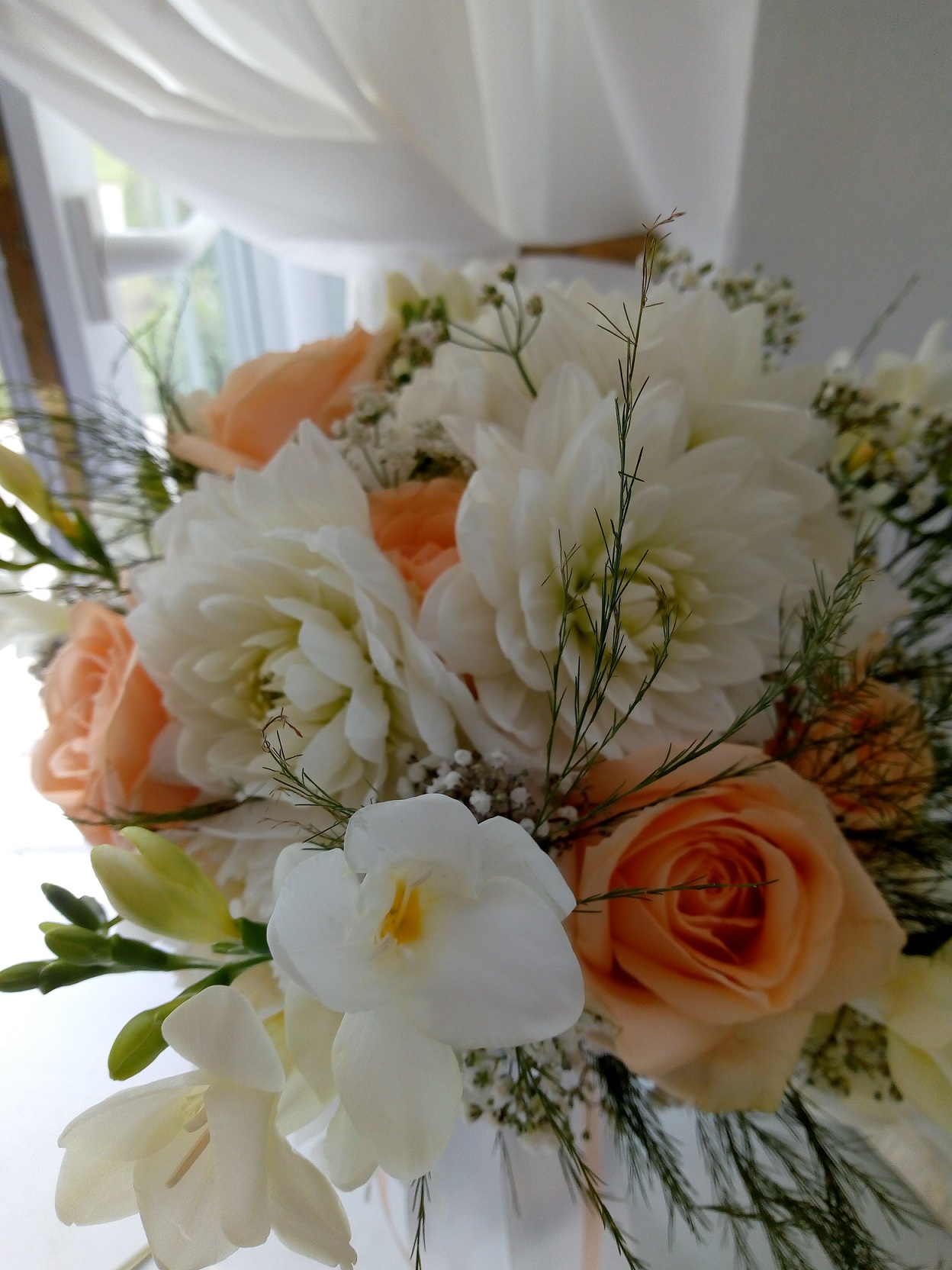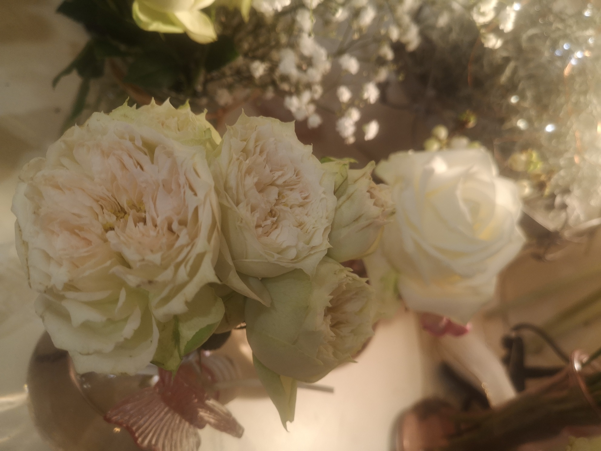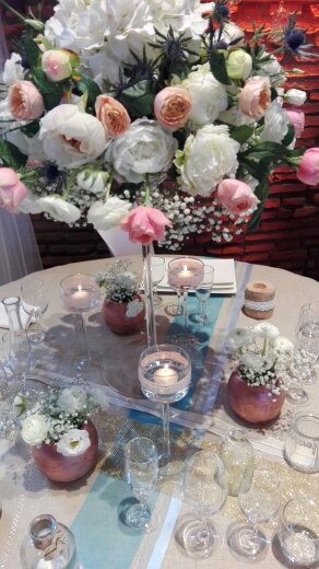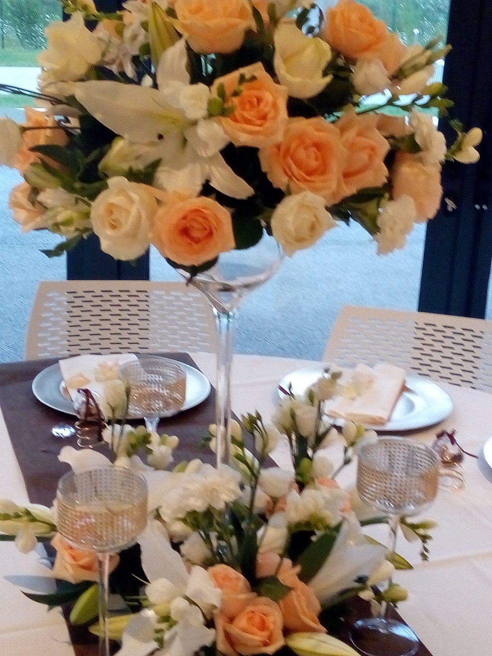 Romantique – Glamour… bouquet blanc œillet blanc rose blanche vase, dentelle gypsophile photophore romantique pivoine rose dav dav table d’honneur , table des mariés fleurs pêches rose blanche dav Des roses des bougies centre de table romantique bougie et photophore Bouquet de roses et retombé de feuillage Gros bouquet sur vase haut